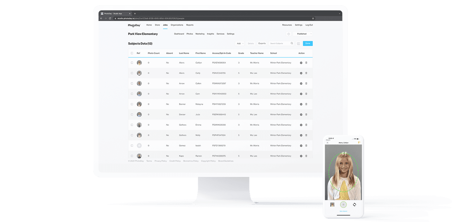 This is where FaceFind works its magic ✨ Capture syncs the reference photos and data to PhotoDay, so all you have to do is upload your professional photos and watch FaceFind match the right face to the right data. FaceFind is wildly accurate—we've tested it on individuals, buddy poses, group photos, profile views, sunglasses, face masks...it can even differentiate between twins!
