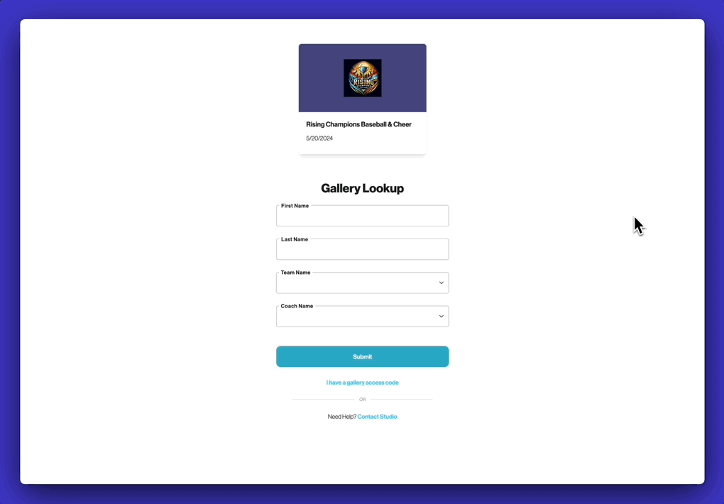 Gallery Lookup is a new Beta feature that allows customers to find their subject’s photos within a private gallery without needing an access code.