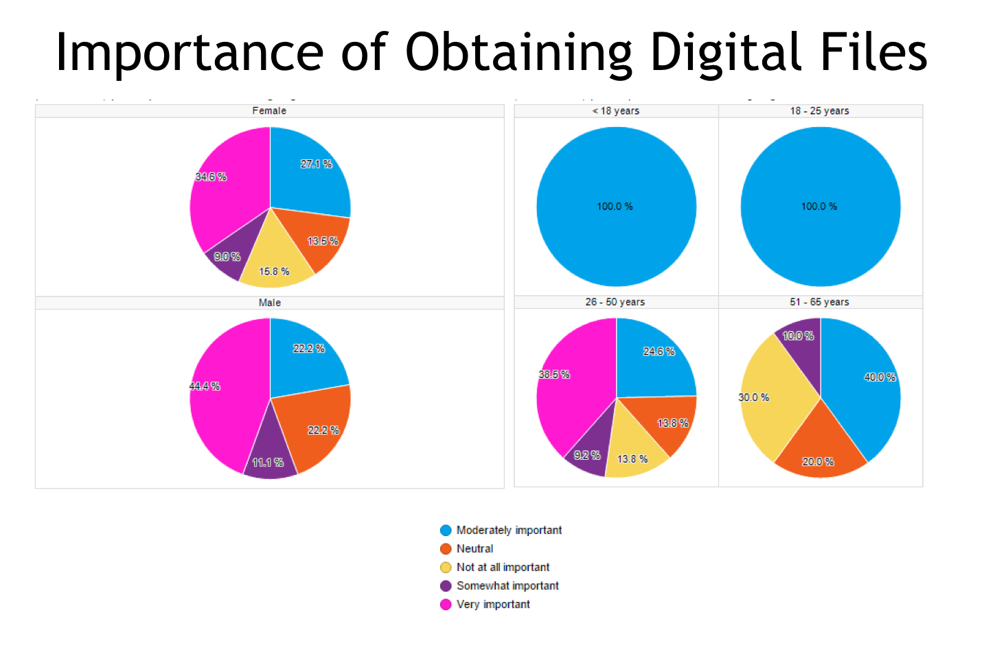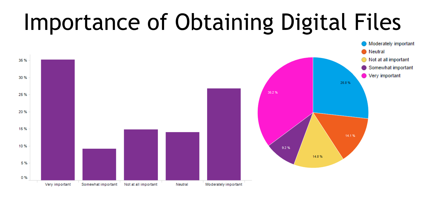 - Let’s talk digital files. 35% of all parents find it very important digital files are made available to them. 27% find it moderately important. That’s over half of all respondents. It’s important to note 100% of parents 18-25 find it moderately important. 50% of parents 51-65 don’t find it important at all, or could care less.