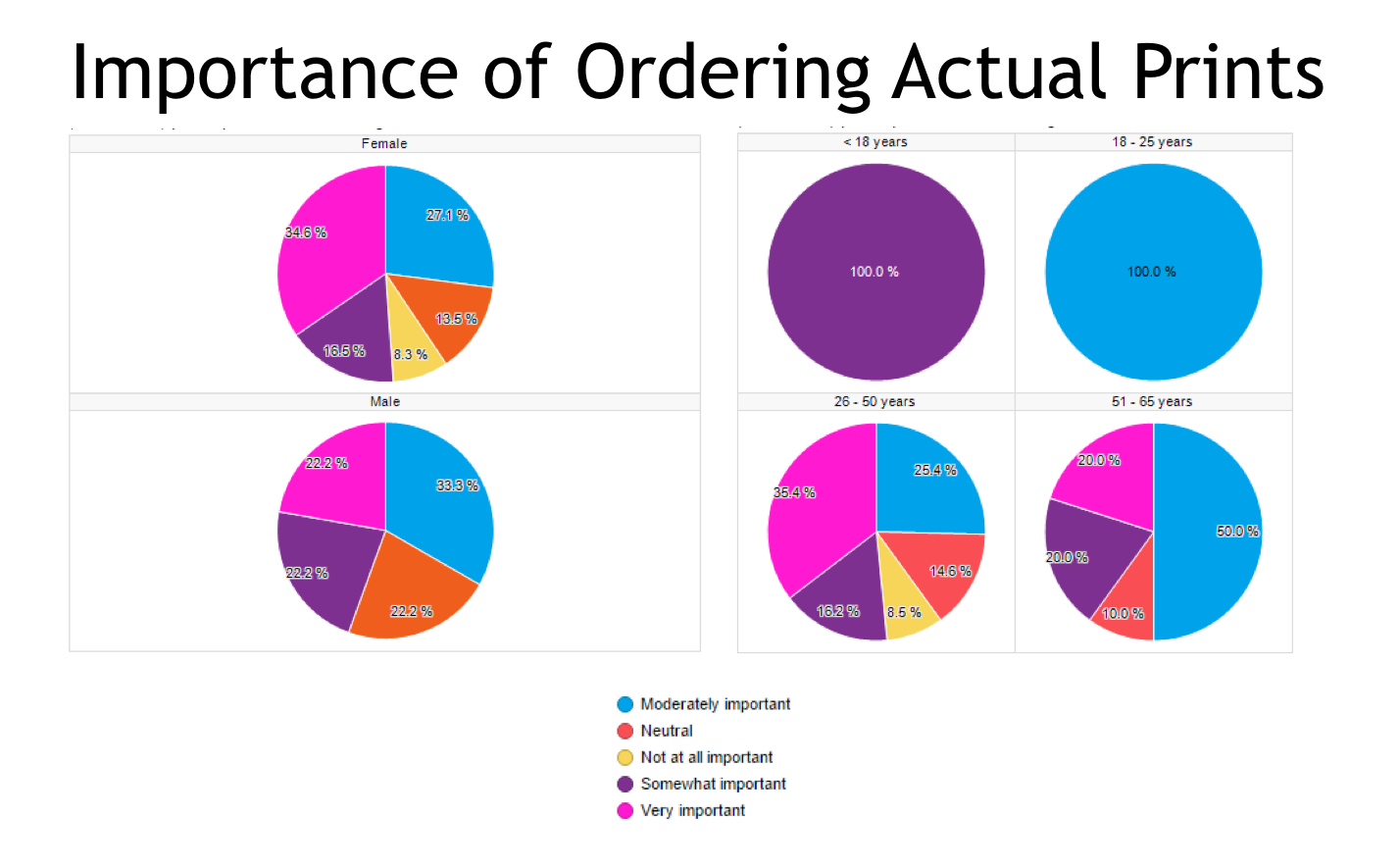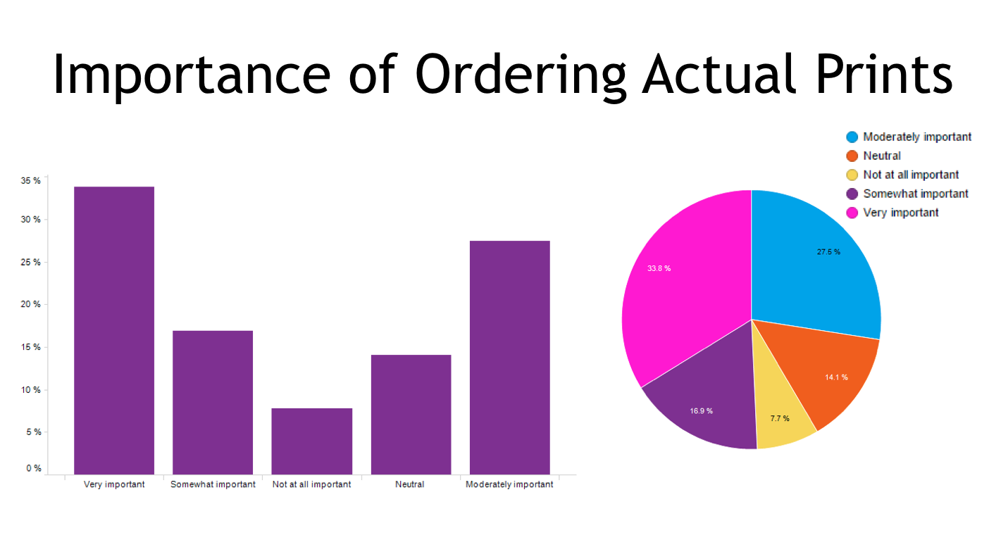 - 33% of all age groups find it very important to order actual prints. 7% don’t feel it’s important at all or order prints. GOOD NEWS! 100% of young parents 18-25 find it moderately important to order prints.
