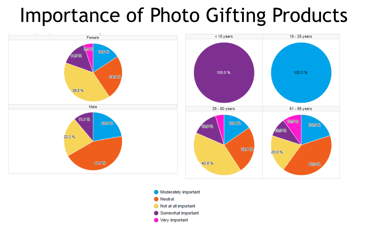 - 60% of parents between 26-65 do not find it important, or are completely neutral when it comes to ordering photo gifting products. Surprisingly, younger parents 18-25, 100% find it moderately important.
