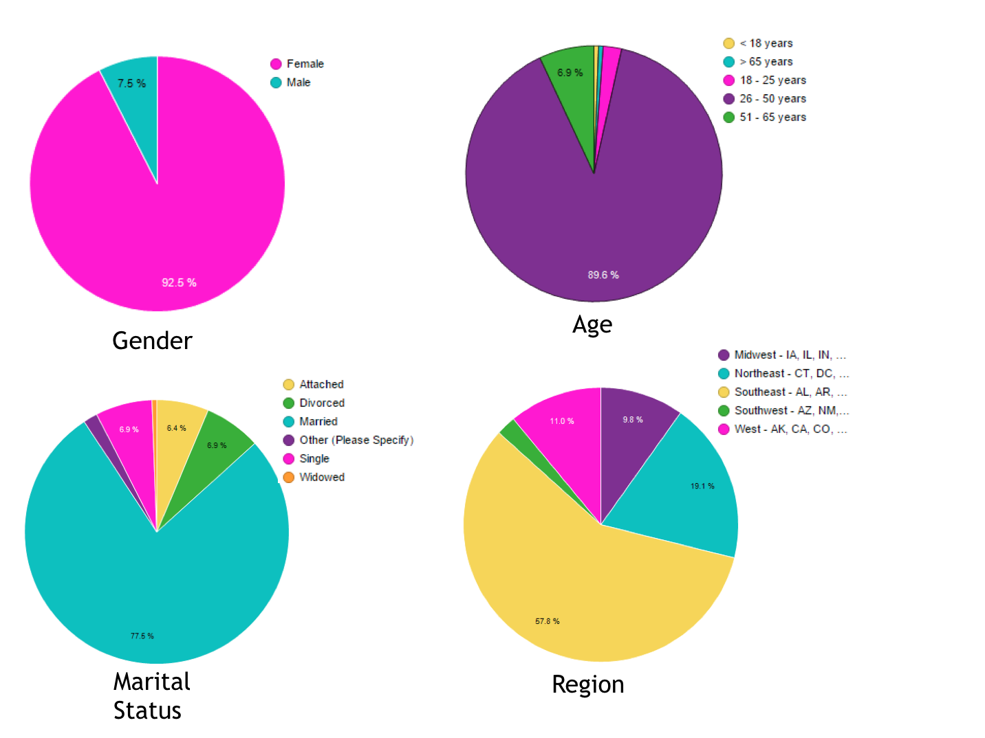 - We included region, and while most of my following is in the southeast (58%) we did receive various responses from other parts of the country.