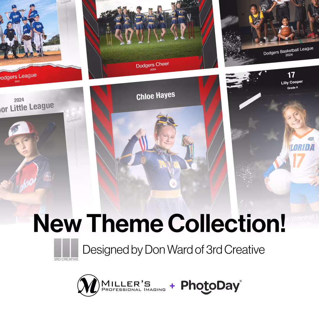 PhotoDay and 3rd Creative recently announced an exciting new theme collection that is available exclusively through Miller’s Lab + PhotoDay! These stunning, versatile themes complement 3rd Creative’s other popular designs perfectly.