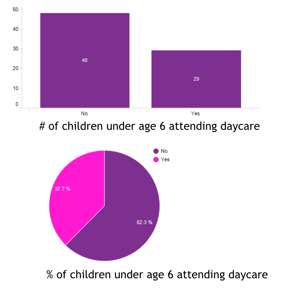 - Out of all families, 62% with children under the age of 6 attend daycare.