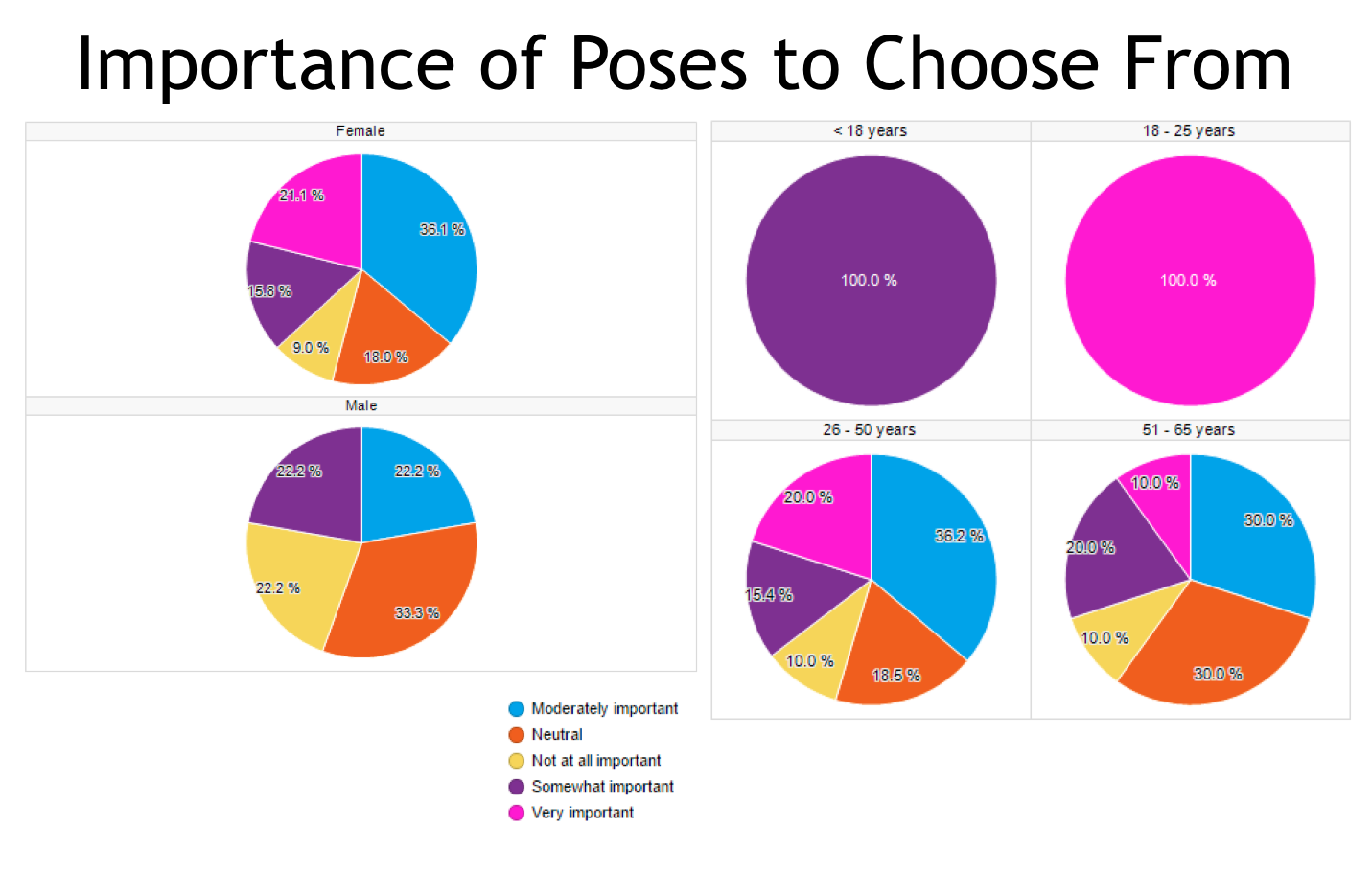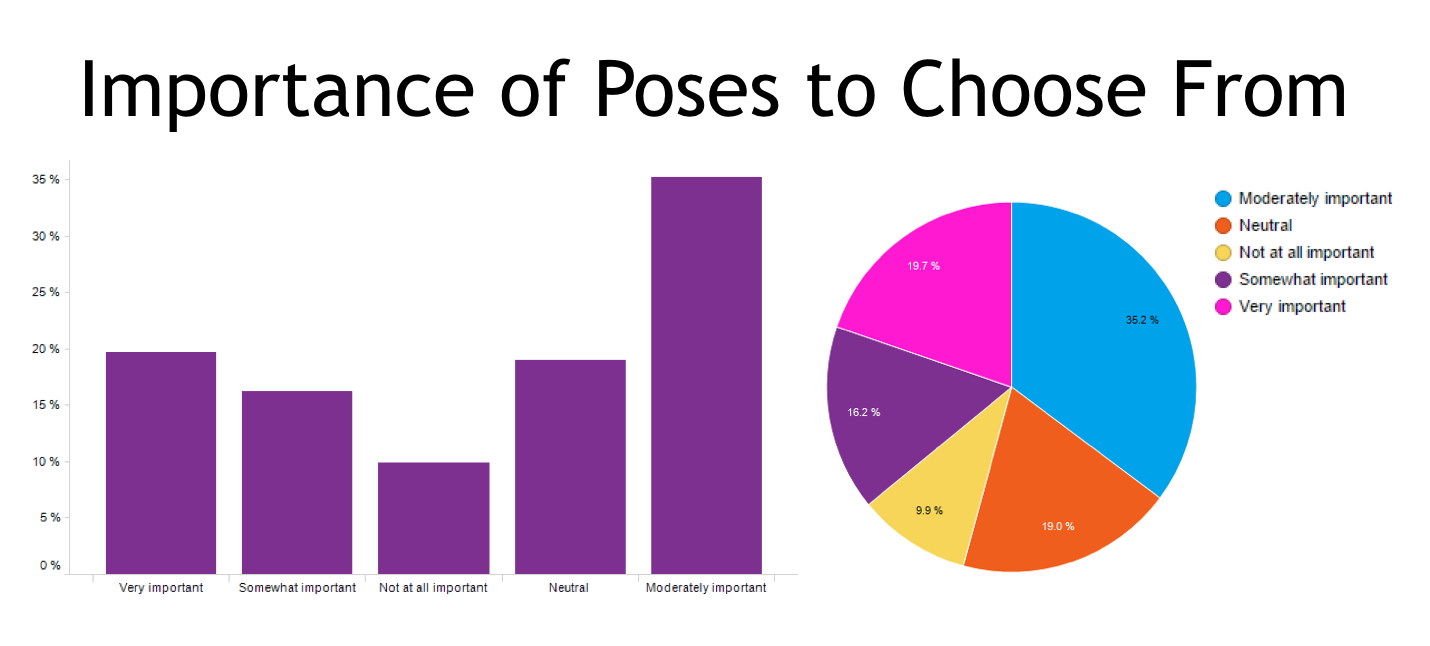 - A whopping 100% of the young parents find it VERY important to have multiple poses to choose from. Nearly 60% of parents 26-50 find it important. 40% of the older parents 51-65 don’t really care. Maybe it’s because they’ve never had the option presented to them.